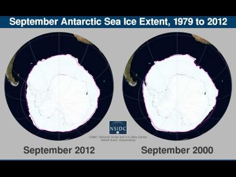 than 99% of the continent is covered by ice. Sea ice surrounding Antarctica has dramatically increased since 1979. Courtesy, National Snow & Ice Data Center.