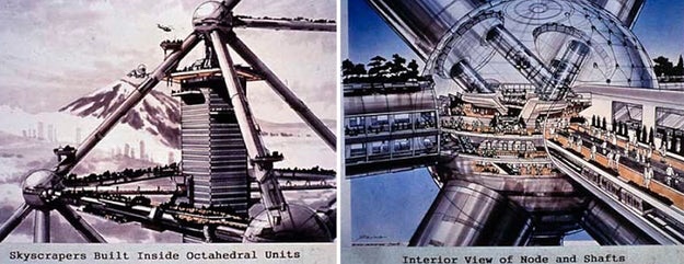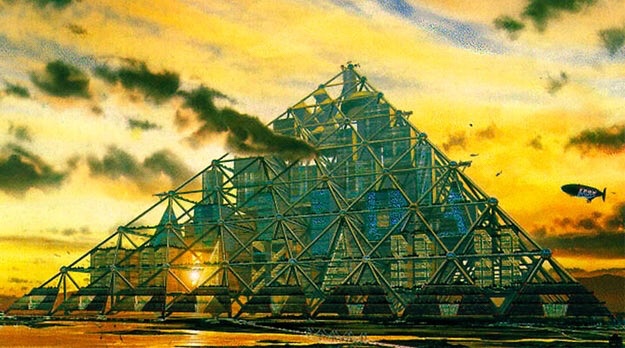The Shimizu TRY 2004 Mega-City Pyramid concept for Tokyo is a proposal so large that it can only be completed with the help of carbon nanotubes; images via Dark Roasted Blend.